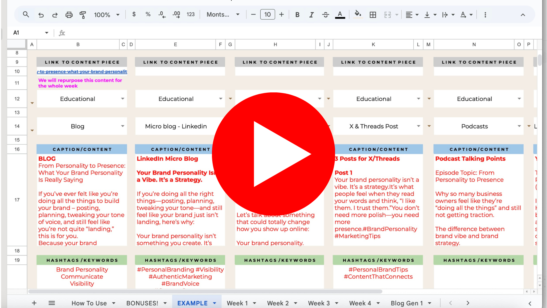 Weekly content creation system & planner